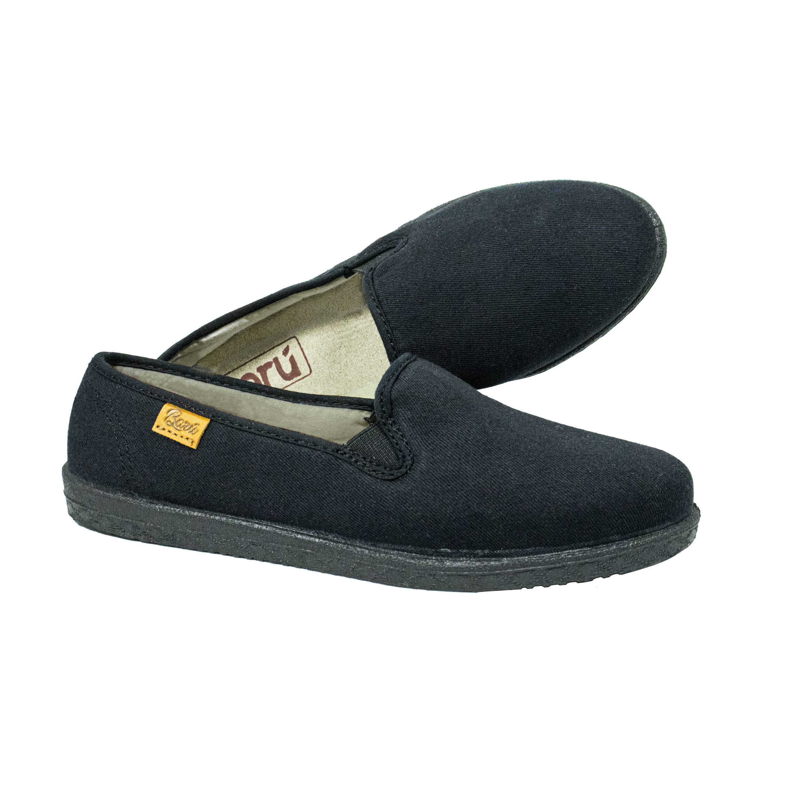 Zapato de lona de algodon impresa inyectado con PVC semi expandido con forro laminado con esponja para mayor suavidad en conjunto con una plantilla PU